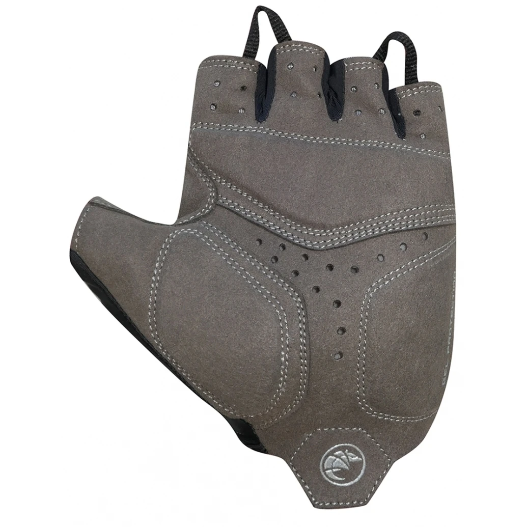 Comfortable short-finger gloves made of air-permeable outer material, with ergonomic gel padding and terry thumb.