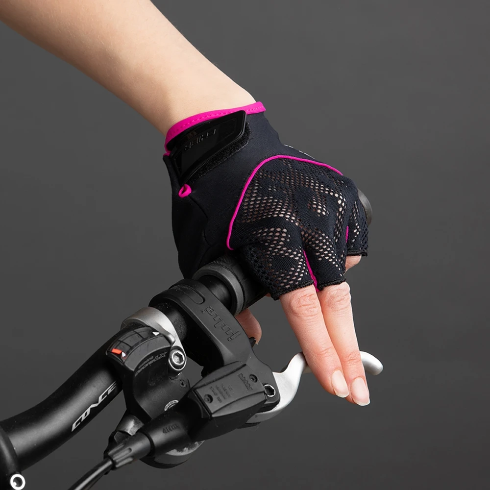 Comfortable, breathable short-finger cycling gloves for women with Airmesh palm and special cut for maximum comfort on the bike.