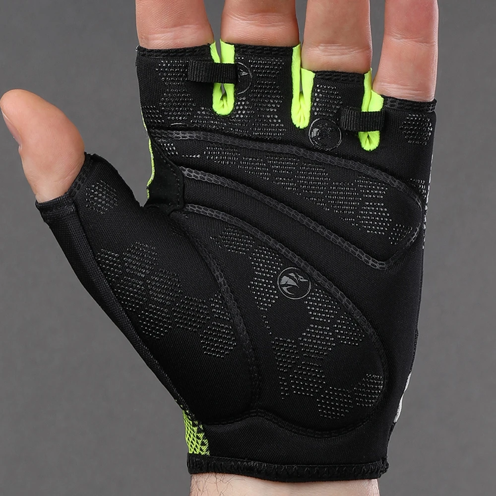 Comfortable, breathable short-finger cycling gloves with light padding and silicone print on the palm for a comfortable grip on the handlebar.