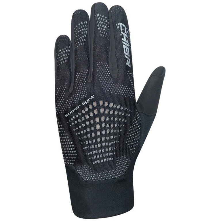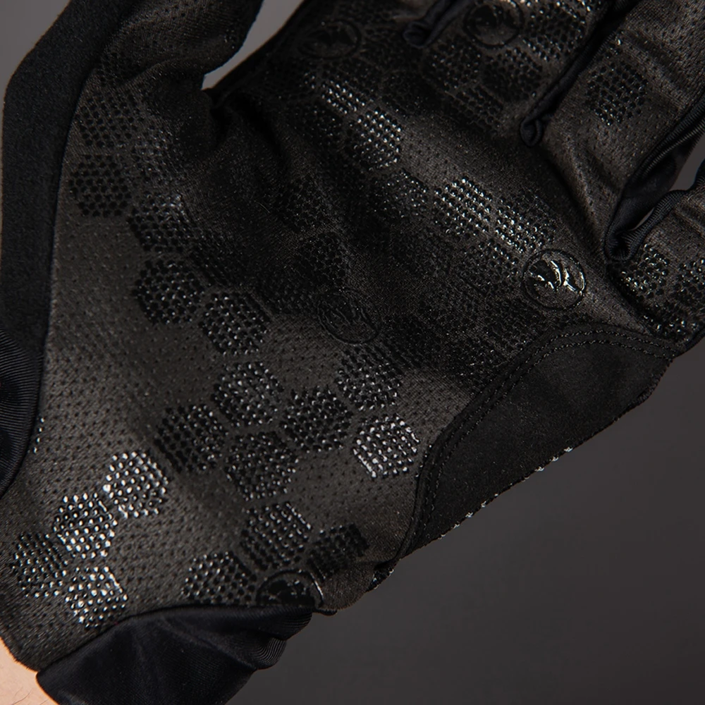 Full finger gloves without padding for best handlebar contact, with silicone print for a secure grip as well as touch finger